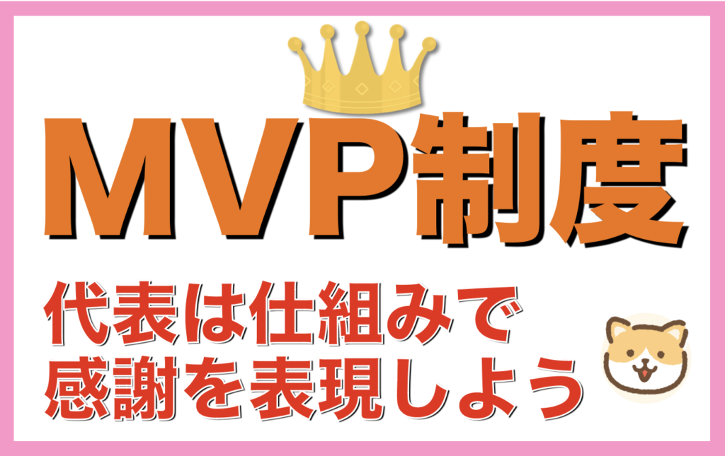 - 【第44回】MVP制度こんにちは。しょちょーです^_^ 今日は、うちの会社で取り入れているMVP制度についてお話ししてみたいと思います。 目次 訪問の仕事は「一人の時間」がとにかく長いそこで導入したのがMVP制度ですM